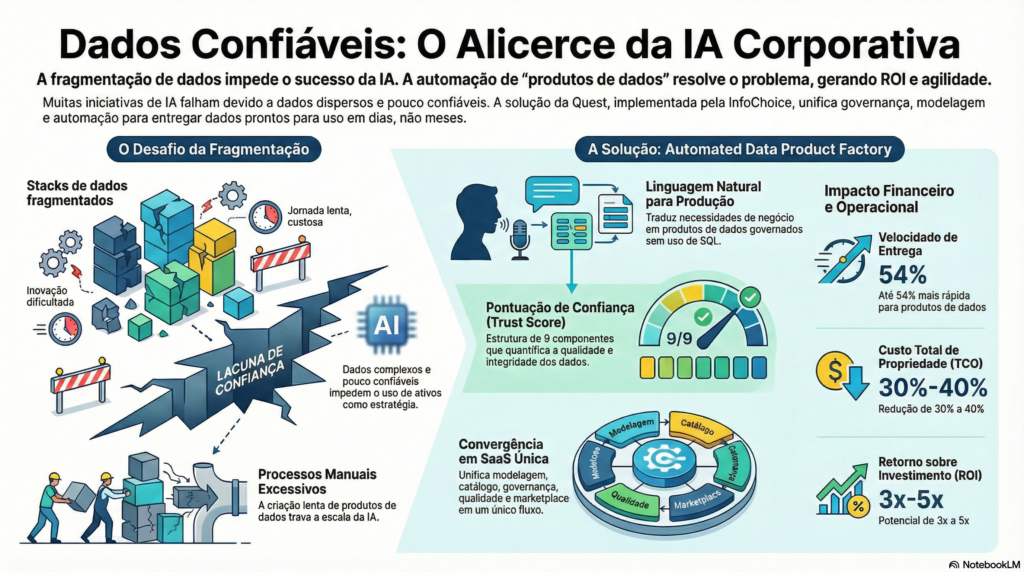 Mais do que automação, trata-se de uma mudança de paradigma: dados tratados como produtos confiáveis, mensuráveis e reutilizáveis — fundamentais para iniciativas analíticas e de IA em escala.