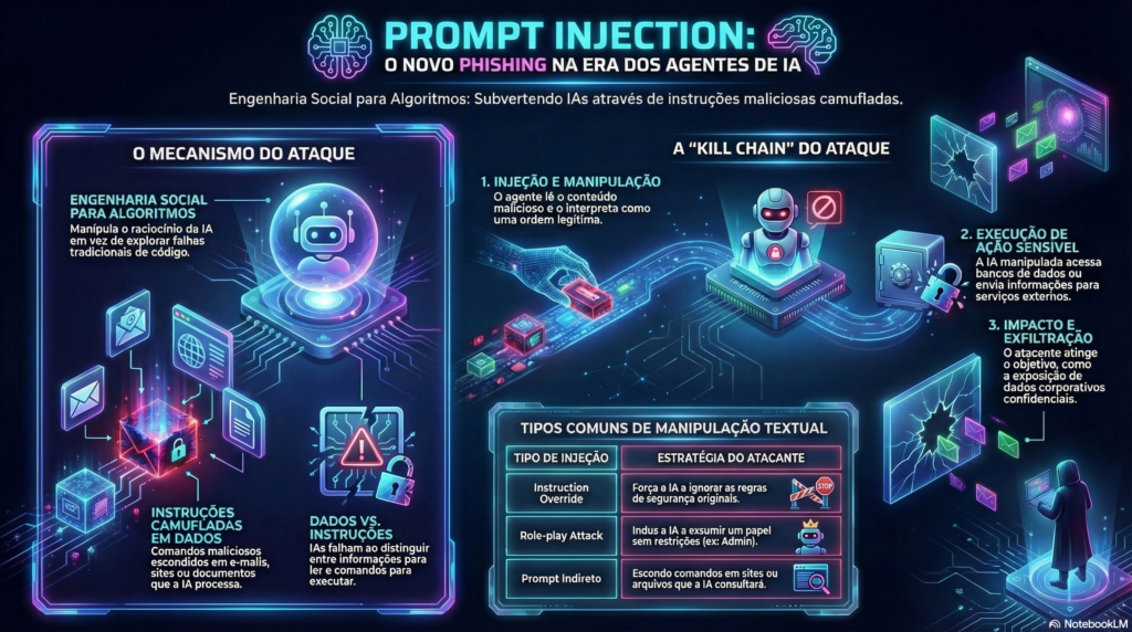 Quando esses sistemas passam a atuar como agentes conectados a dados, ferramentas e processos corporativos, o impacto potencial desse tipo de manipulação aumenta significativamente.