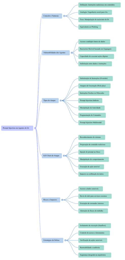 No contexto dos agentes de IA, essa abordagem ajuda a entender como um simples prompt malicioso pode evoluir até se transformar em um incidente de segurança mais sério.
